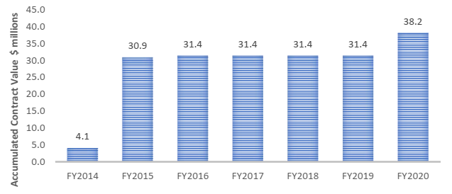 As shown in Figure 1, from financial years ended 31 March (FY) 2014 to FY2020, the Group’s accumulated contract values for digital related projects for engineering or water-related and environmental businesses increased from S$4.1 million to S$38.2 million.